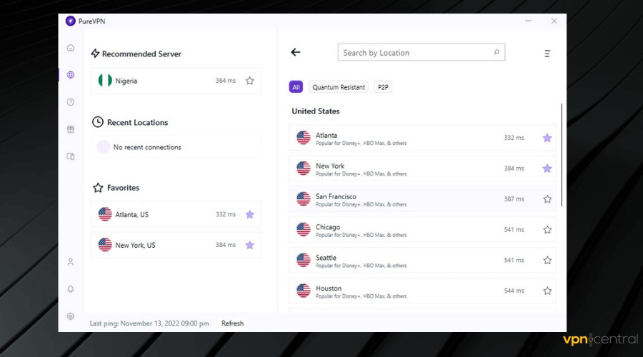 PureVPN features more than 750 servers located in more than 140 countries. It comes with an extensive network and excellent protocol support.