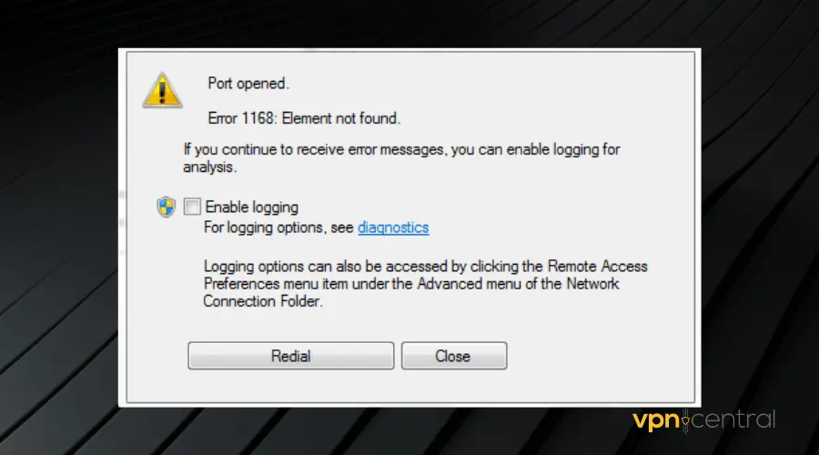 How to fix VPN error 1168 element not found?