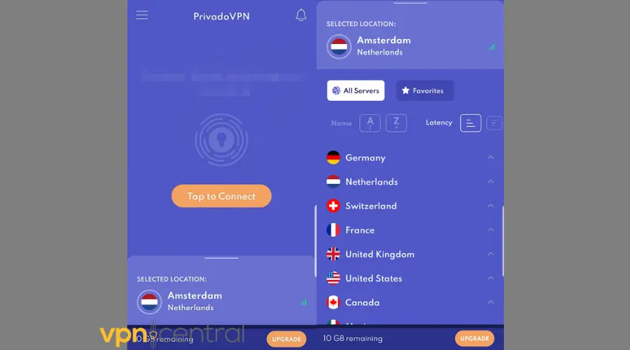 PrivadoVPN is an excellent option if you’re looking to upgrade later. Its free plan offers 10GB/month, which is adequate for occasional users.