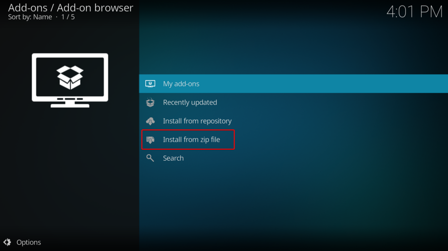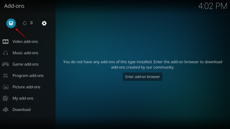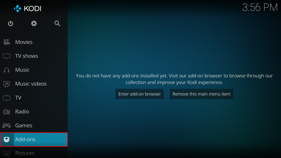 - Open Kodi and choose the Add On option.