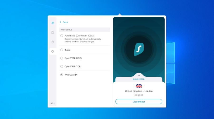 Surfshark takes your security and privacy to the next level by employing AES-256 encryption along with the WireGuard, IKEv2, OpenVPN, and Shadowsocks VPN protocols.