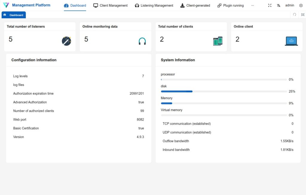 One of the main reasons Vshell is hard to block is its listener‑based design. Through a centralized “Listener Management” (监听管理) interface, operators can create multiple C2 channels across different protocols and ports. [Censys, tool documentation]