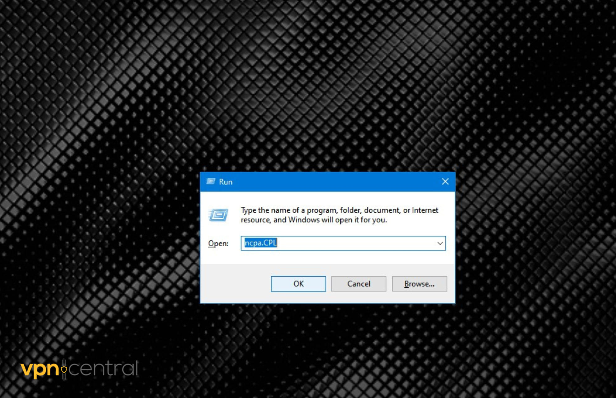 - To open the Network Connections window, use the Windows key plus the letter R to bring up the Run dialog box, then type ncpa.CPL into the box and hit Enter to proceed.