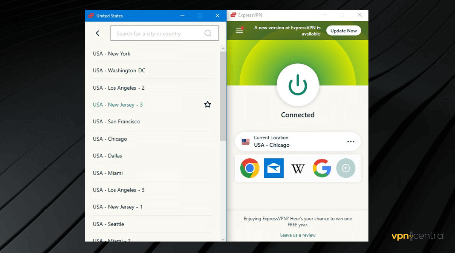 - After signing in, select any server in your preferred location. In this case, we connected to a US server, but you can pick any country where beIN is available.