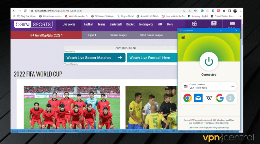 For beIN Sports, we recommend ExpressVPN. It’s fast and has over 3000+ servers in 94 different countries, including all regions where this platform broadcasts.