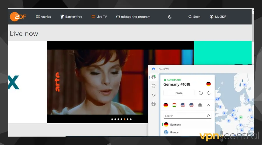 → When you connect to a server in Germany, your IP address is concealed. Once the IP changes to a German IP, it tricks the TV channel into believing you’re currently in the country.