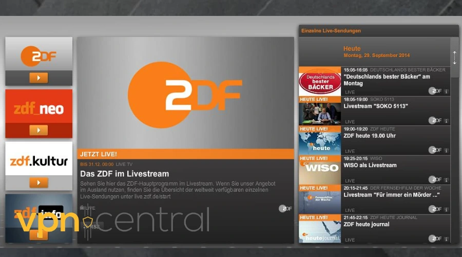 - Sign in to any German TV channel and enjoy streaming. I tried it out with the ZDF channel and it worked out just fine.