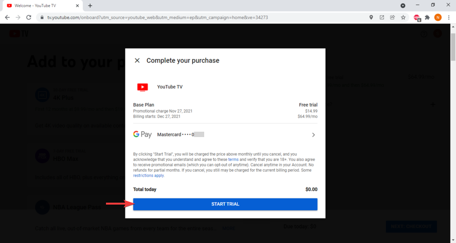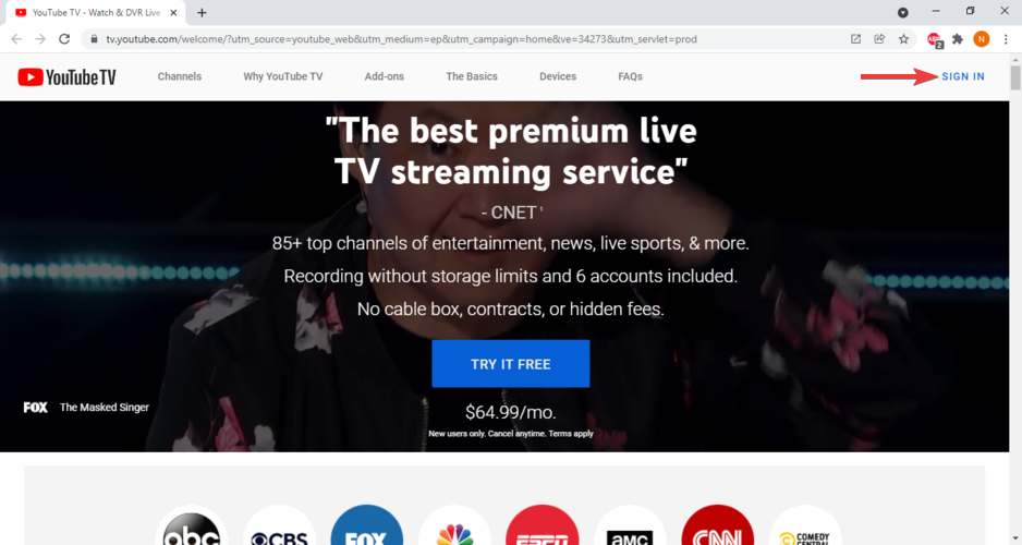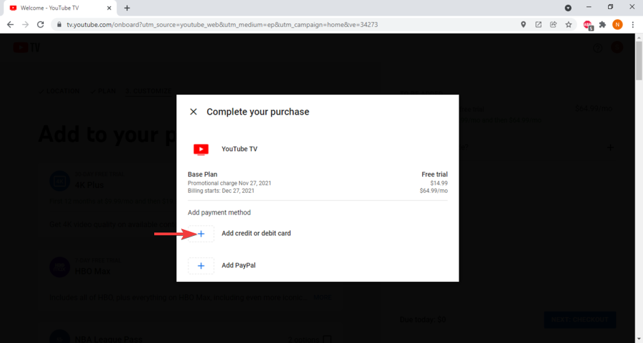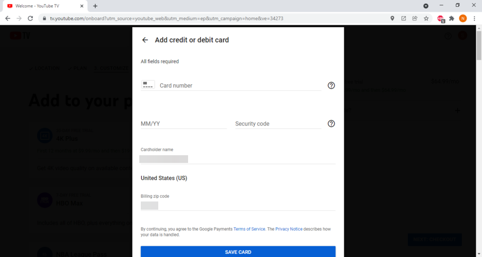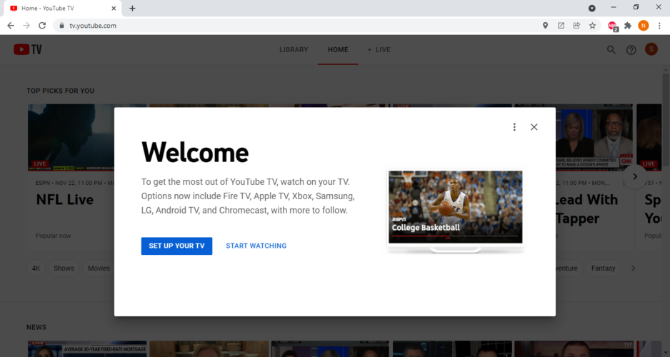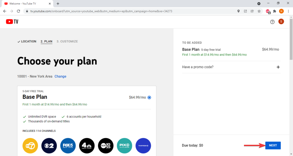 - Hop on YouTube TV and create a new account.