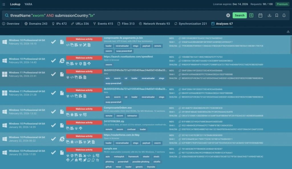 XWorm v5.6 malware spreads through fake Bradesco bank receipts targeting Brazilian and LATAM businesses. The campaign delivers a multi-stage RAT that steals credentials, hijacks browser sessions, and sets up ransomware staging. Researcher Moises Cerqueira uncovered the sophisticated infection chain.
