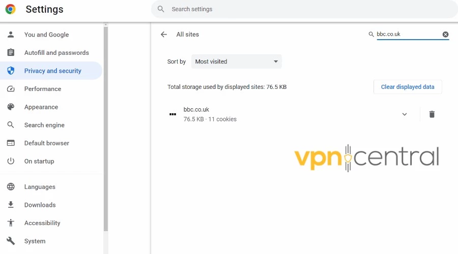 To clear BBC’s cookies and site data on Chrome, follow these steps:
