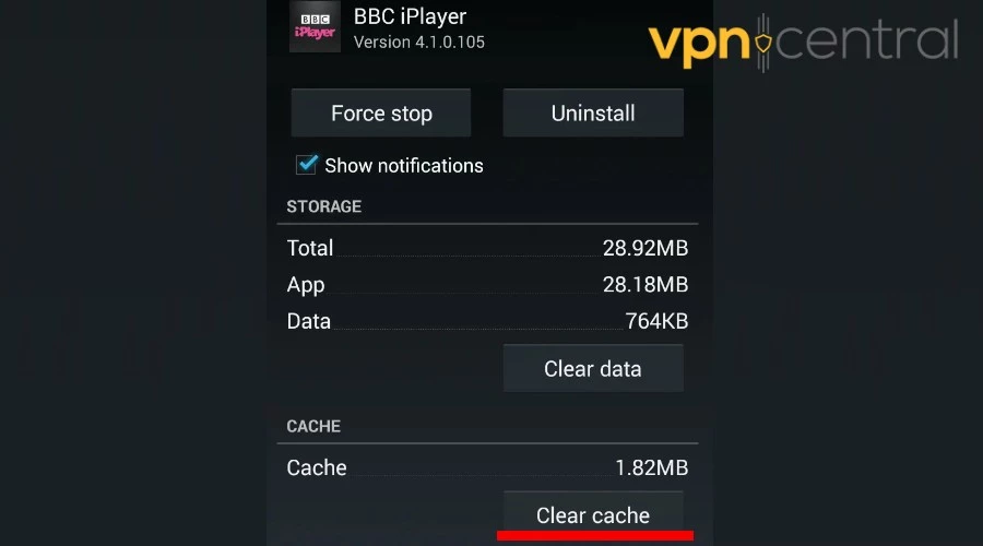 5. Now go to the iPlayer website or launch the app and it will recognize that you‘re located in the UK. - Clear app cache