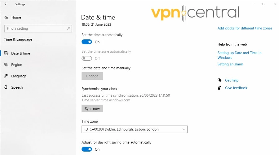 If you‘re on Windows, BBC iPlayer playback can fail if the time isn’t correct or is set to a region outside of the UK.