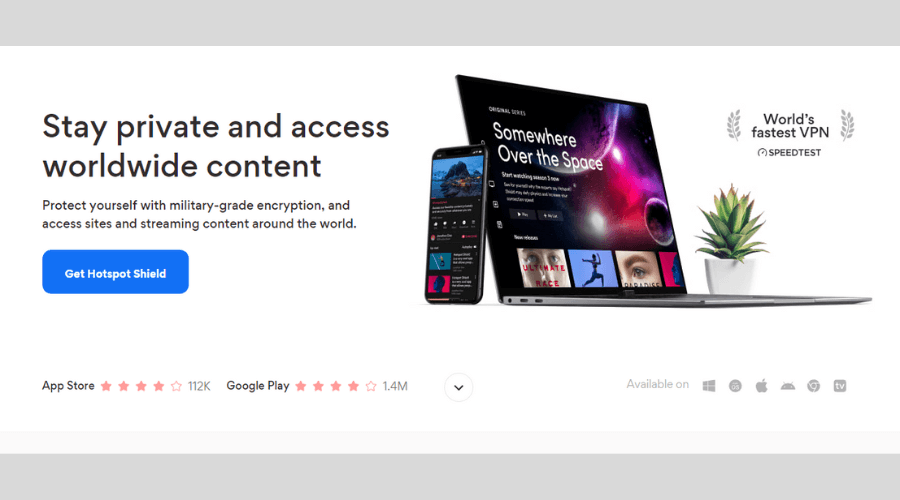 Certainly, Hotspot Shield is one of the most widely-used VPN services out there, with its dedicated apps surpassing 600+ million downloads worldwide.