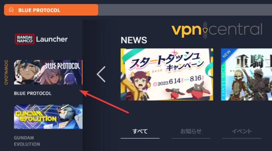 To install the initial version of Blue Protocol outside of Japan, you must use a VPN to change your location. Then, with a Japanese IP address, you can get the game from the BANDAI NAMCO platform.