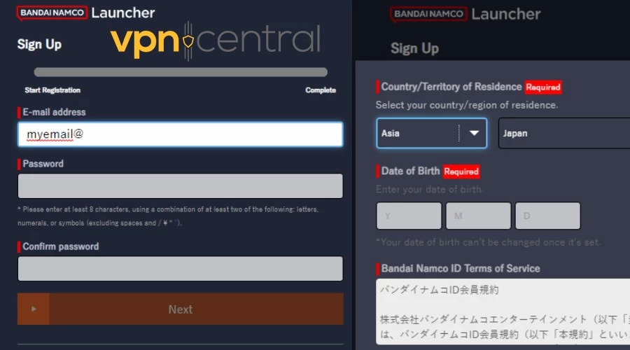 - Go to the BANDAI NAMCO launcher here and register an account.