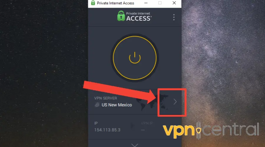 3. Expand the server list and select your desired location on the list.