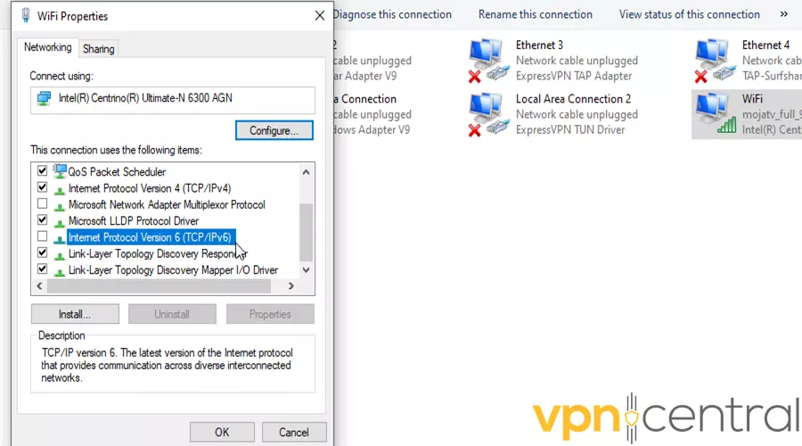 - Uncheck Internet Protocol Version 6 (TCP/IPv6) on the list.