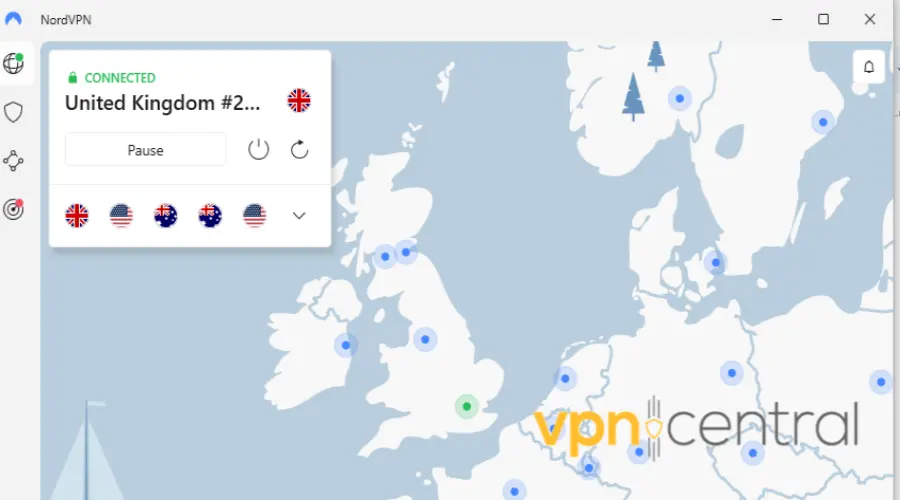- Connect to a server in the United States or the UK. In this case, we connected to a UK server.