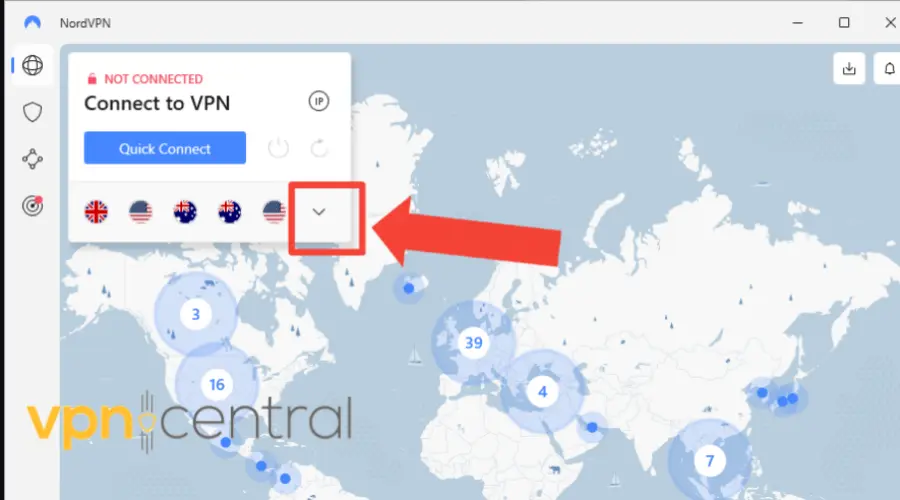 4. Choose a server from the list or use the quick connect feature to find the best server for you.