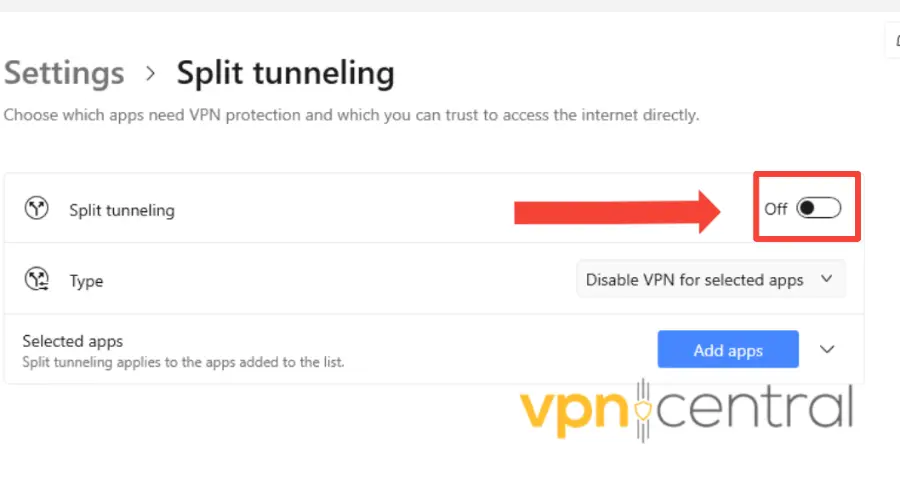Split tunneling lets some apps and websites skip the protected VPN tunnel and connect directly to the internet.