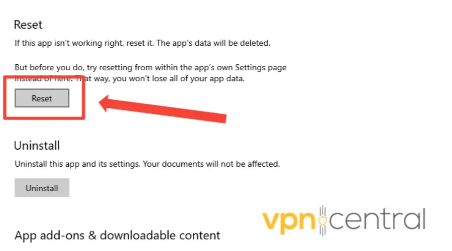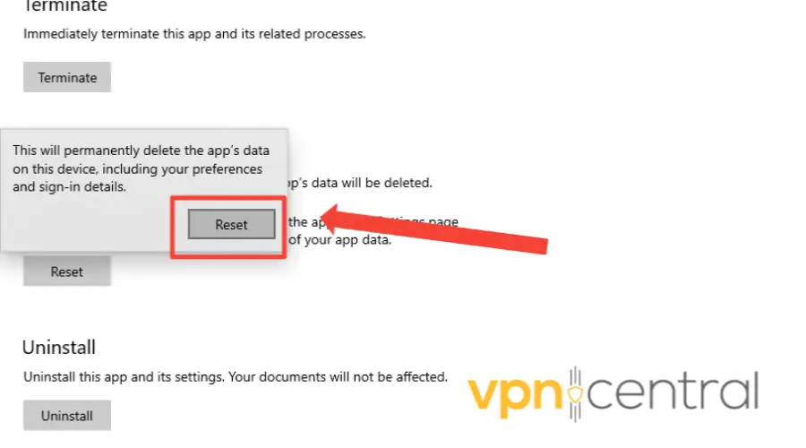 6. Scroll down and locate the Reset button. This feature is used to fix any issues with the application if it’s not functioning properly.