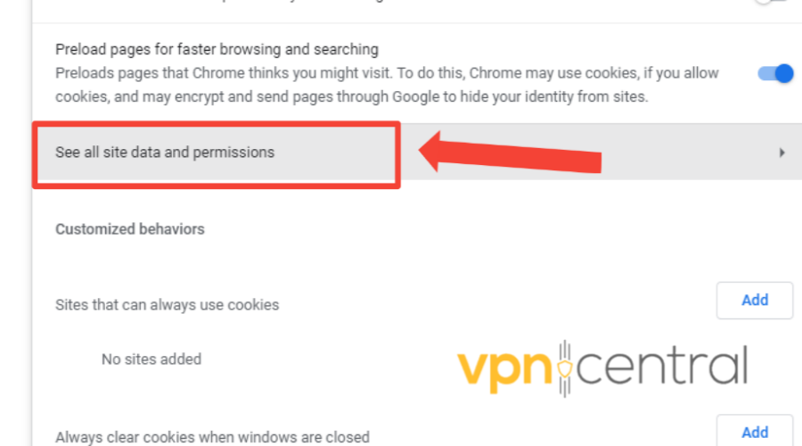 4. Scroll down and select see all site data and permissions.