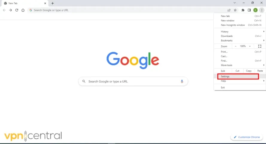 1. Access your browser’s settings by clicking on the hamburger icon on the top right-hand corner and then locate the settings button.