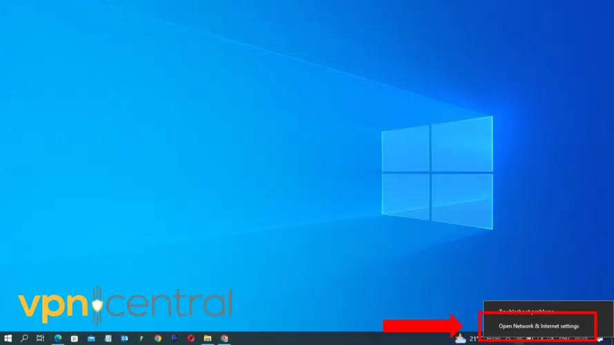 1. Right-click the network icon (or the WiFi icon if you are connected to WiFi) in the taskbar notification area and select Network and Sharing Center.