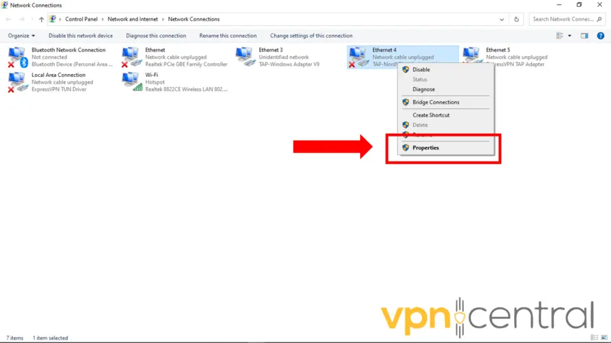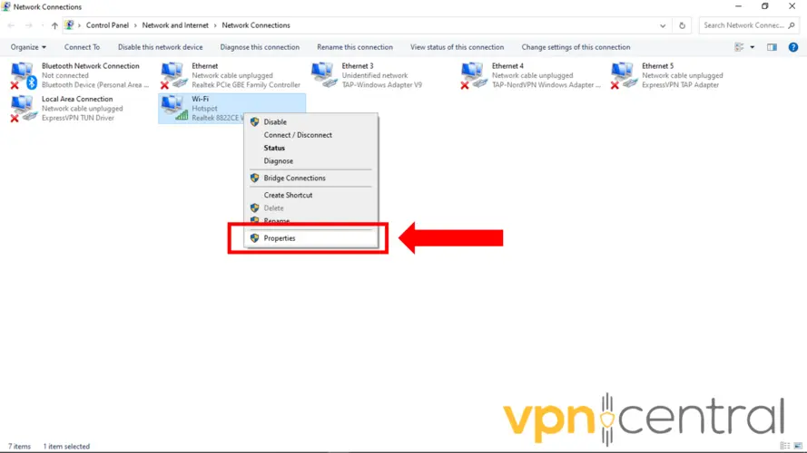 3. Right-click the Windows adapter you are using and choose Properties.