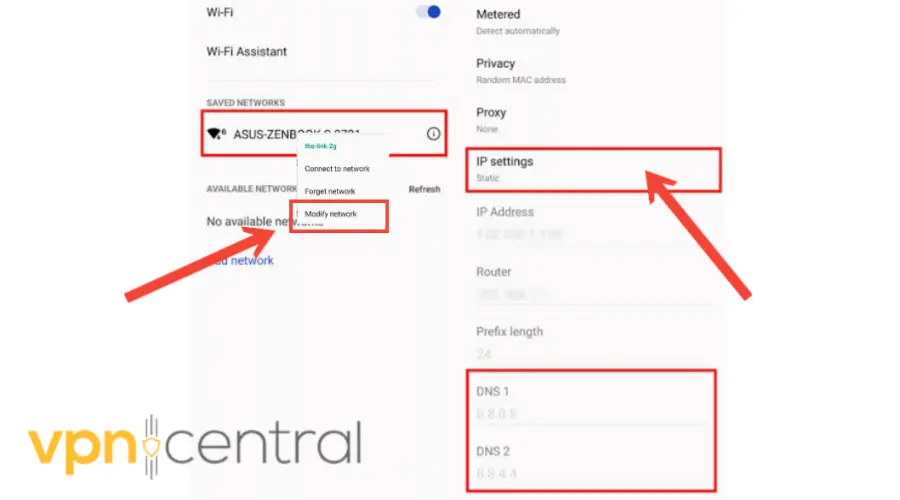 3. Long press your Current network, then select Modify network.