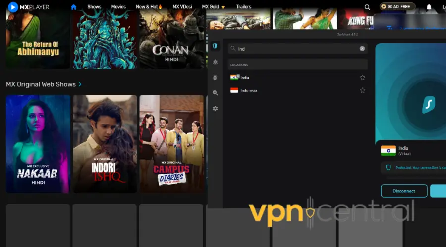 If you connected your VPN to India, that should do. But, if you’ve accessed MX Player before, without VPN, your cookies may have stored your real location and use that info when you access the site.