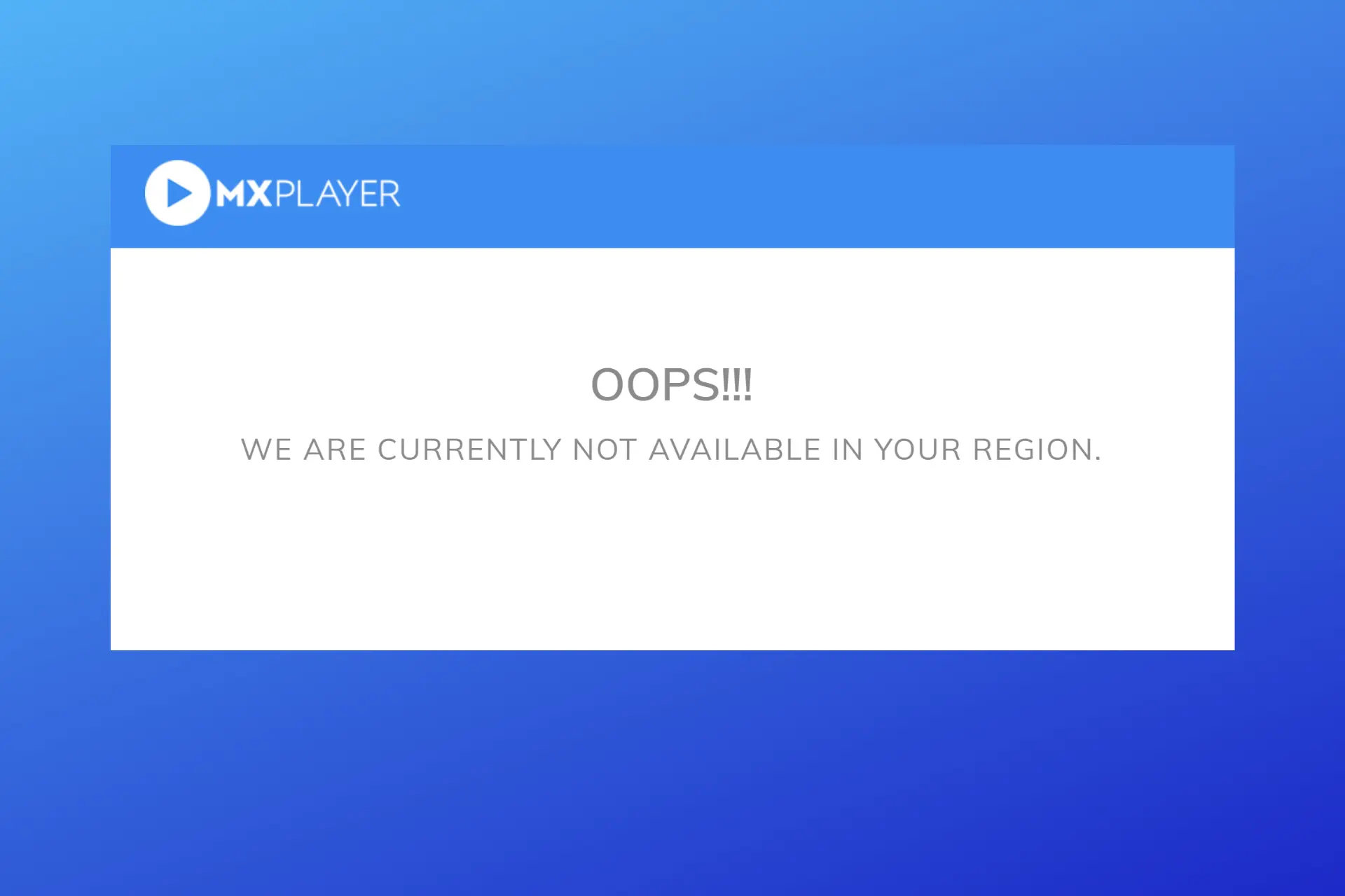 Therefore, it displays an error that reads: OOPS!!! WE ARE CURRENTLY NOT AVAILABLE IN YOUR REGION or MX Player is not available in your region.