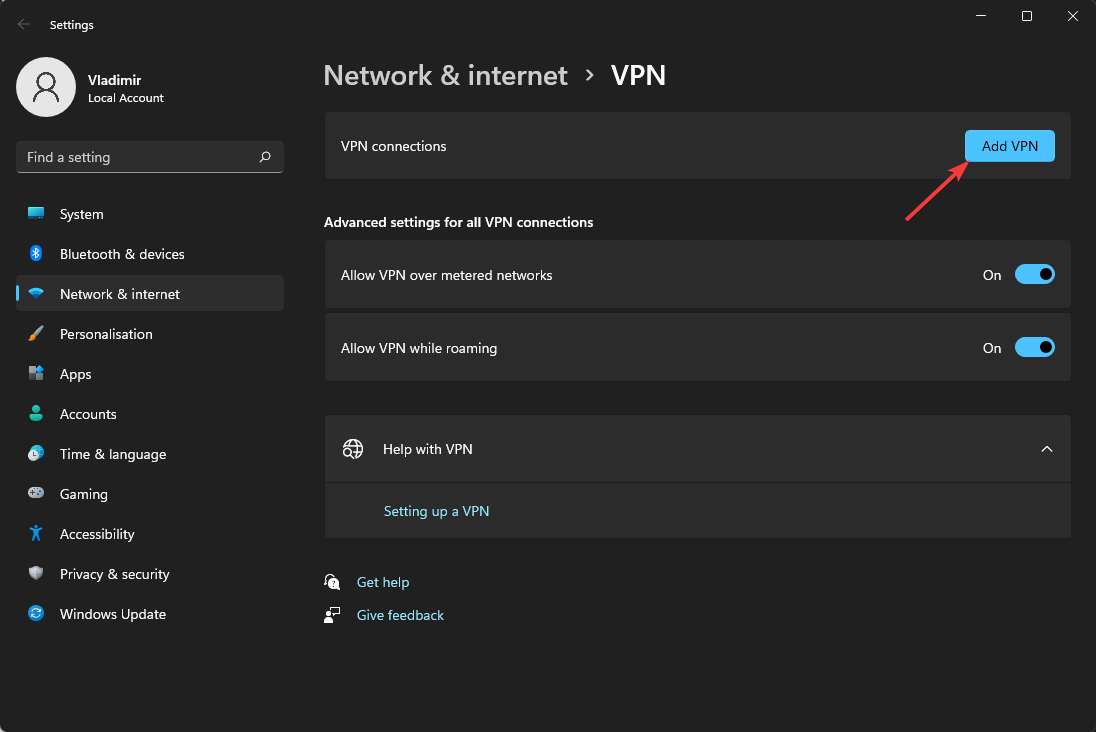 - Find your VPN service in the list, right-click it, and choose Settings.