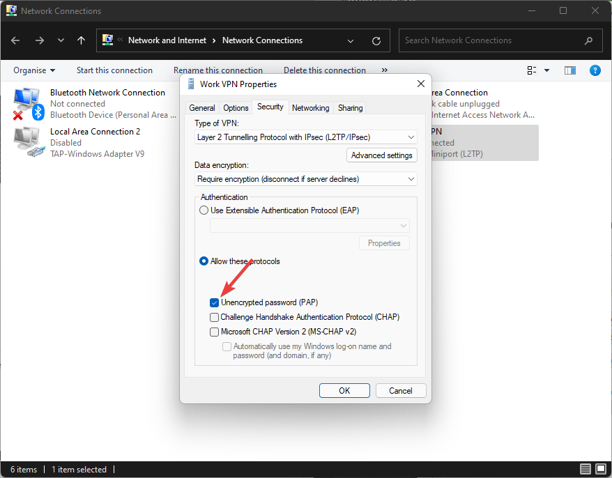 - Only check the Unencrypted password (PAP) option, and deselect any others.