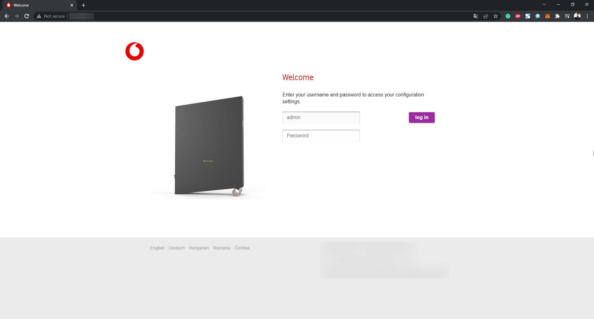- Log into your router’s settings page with the network credentials (if not changed, the username will be Admin).