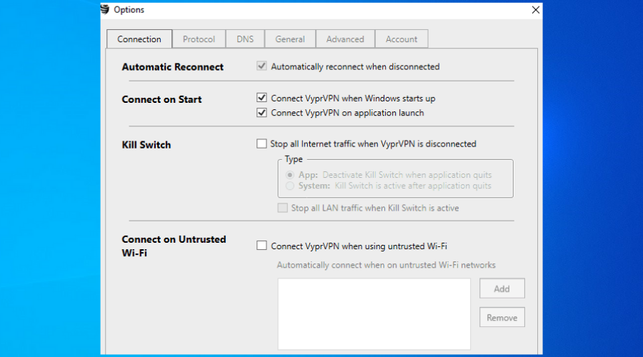 Moreover, it is also packed with the following features: NAT Firewall, Kill Switch, Connection Per App VyprDNS and VyprVPN cloud, as well as P2P and torrenting support.