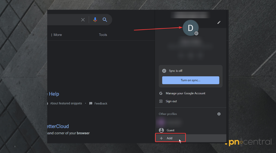 - Open Chrome and click on your profile icon in the upper right corner.